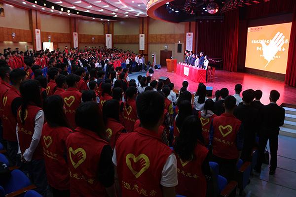 大会在庄严的国歌声中拉开帷幕。接着,在王波副书记宣读2018年我校优秀志愿者表彰决定后,汤剑冰副主席、陈晓峰书记上台为优秀志愿者颁奖。随后,各优秀志愿者代表分别上台发言,他们均结合自身实际经历及岗位分享了自己的志愿心得,并承诺将继续坚守自己岗位,积极投身志愿服务活动,为志愿服务活动及河源创文奉献青春力量。紧接着,赖新优部长为禁毒防艾志愿服务队、美丽乡村墙绘志愿服务队授旗。最后,大会在全体奏唱团歌中圆满落幕。