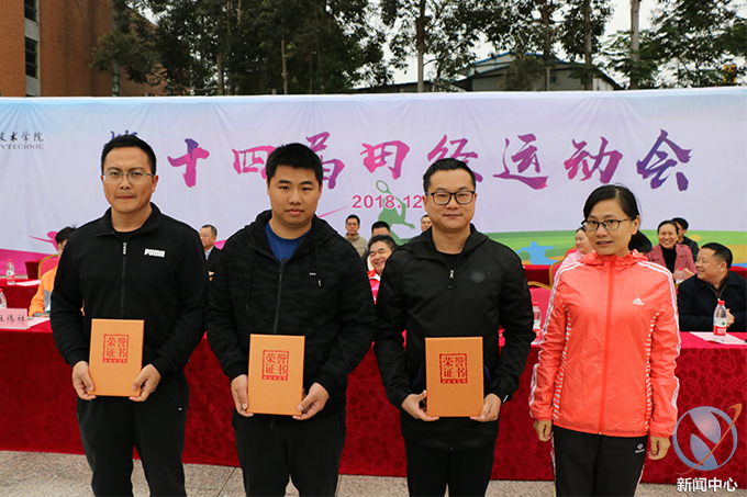 12月7日下午,我校于田径运动场举行第十四届田径运动会闭幕式,闭幕式由赖小景副校长主持。我校副校长唐汉芳,党委委员、组织人事处处长向琼,党委委员、宣传部部长赖新优,以及各处室各学院主要负责人、裁判员、运动员师生代表参加了此次闭幕式。