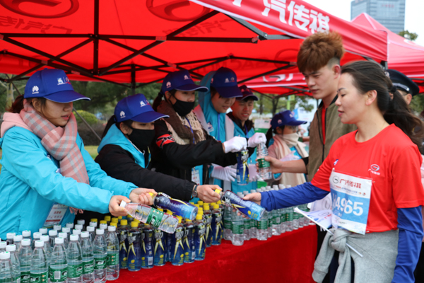 志愿者为选手发放运动饮料