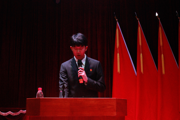 新当选学生会主席李慕史发言