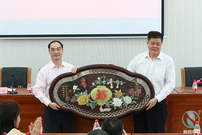 赖小景副校长代表学校对广东省经济贸易职业技术学校工会一行来访交流表示热烈欢迎,并向来宾简要介绍了河源基本市情、我校办学情况以及我校工会部门工作开展情况。赖小景介绍说,我校党委对工会工作十分重视,每年都会正常举行教代会,讨论学校重大决策和重要事项,工会经费逐年增长,在学校财力范围内尽最大努力保障教职工福利、支持学校工会组织开展教职工文体活动等。随后,赖小景副校长与黄志修副书记代表双方学校互相赠送纪念品。