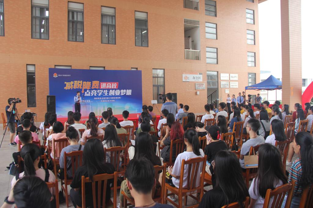 5月16日,我校在图书馆中庭开展以“减税降费进高校 点亮学生创业梦想”为主题的宣传活动。此次活动由我校与江东新区税务局联合举办,江东新区税务局副局长钟阵锋、学工处相关人员及各学院学生代表参加了活动。