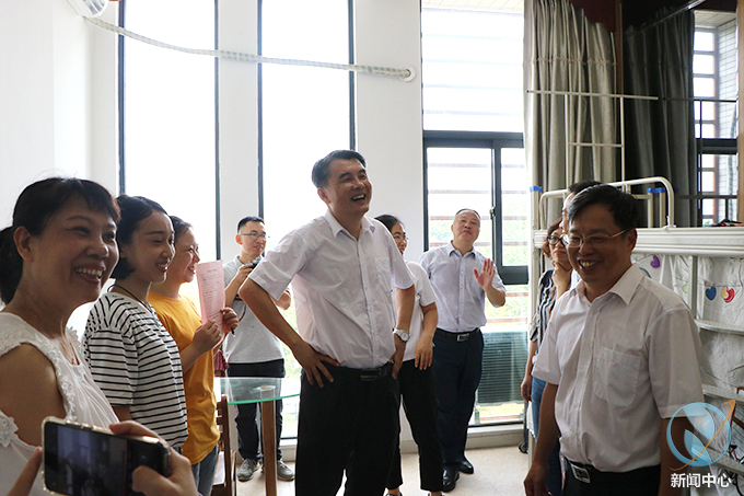 随后,我校领导走访了部分新生宿舍,热心询问了新生们的具体情况、有什么困难、需要什么帮助等问题,同时希望他们能够尽快适应大学生活、明确目标、不松懈、继续顽强拼搏,并表示有困难找老师,学校将积极的给予帮助。