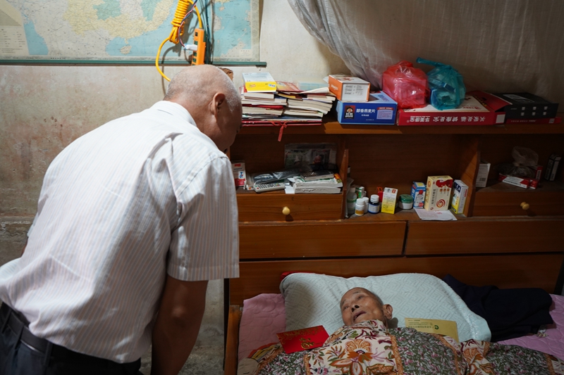 在大洋村抗美援朝退伍老兵王亚洲老人家中,我校一行为他送上慰问金和慰问物资,详细了解老人的身体状况和生活情况,叮嘱老人要注意保重身体。88岁高龄的王亚洲老人18岁参军,当时服役于中国人民志愿军第64军191师571团,参加过1951年10月份朝鲜战场的马良山战役,曾荣获多项功勋;目前老人身体已不如前,一直卧病在床,由子女照顾,生活一度陷入困境,居住条件也较为简陋,但是王亚洲老人为了不给政府增加负担,一直未向政府申请农房改造补助。叶国英同志指出,无论在战争年代还是和平年代,王亚洲老人作为中国军人,无论退伍与否,始终抱着为国家效力的心态。即便是退伍了,也不想给国家增添任何负担,他的爱国精神让人感动,他们才是我们最值得尊敬的人。