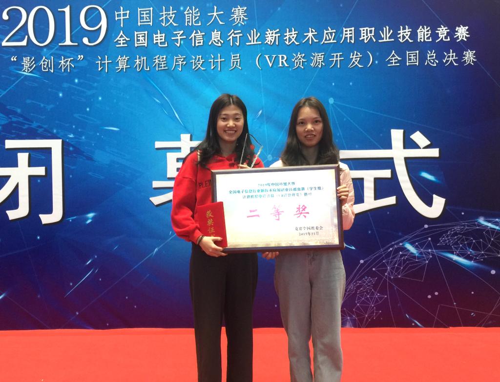 11月15-17日,由国家人力资源和社会保障部批准举办,中国电子质量管理协会主办,中国电子质量管理协会虚拟现实专业委员会、南京铁道职业技术学院和青岛影创信息科技有限公司共同承办的2019全国技能大赛——VR资源开发全国总决赛在南京举行。我校机电学院派出2017级模具设计与制造专业的邓建勤、黄泳池两位同学参赛,最终获得了全国二等奖的佳绩。