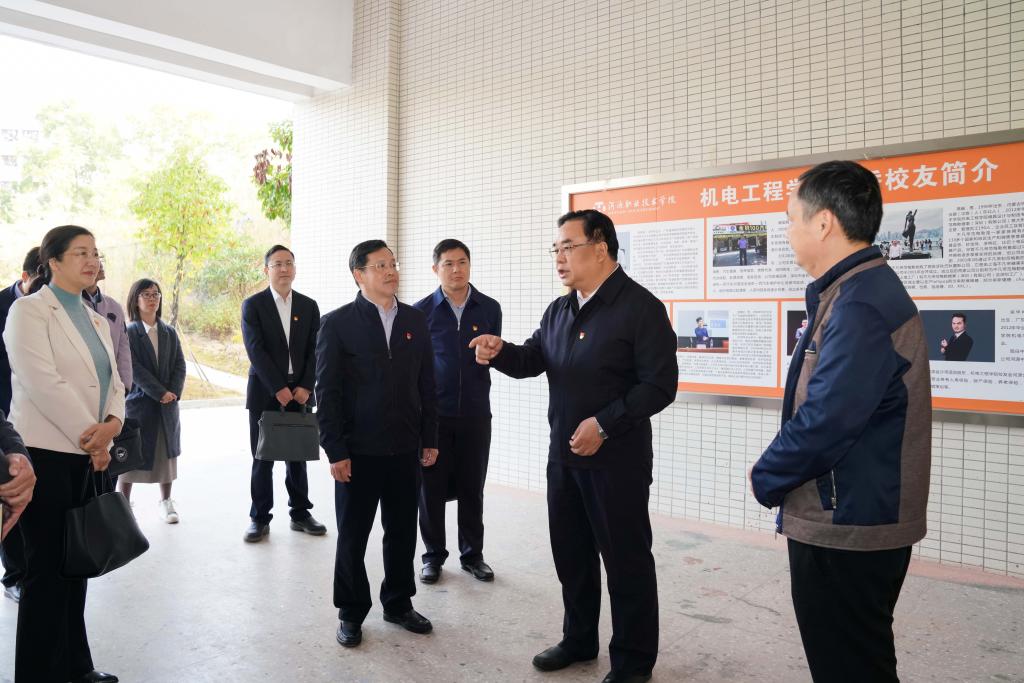 活动中,丁红都还调研了河职院机电工程学院,深入了解该校实践教学情况。