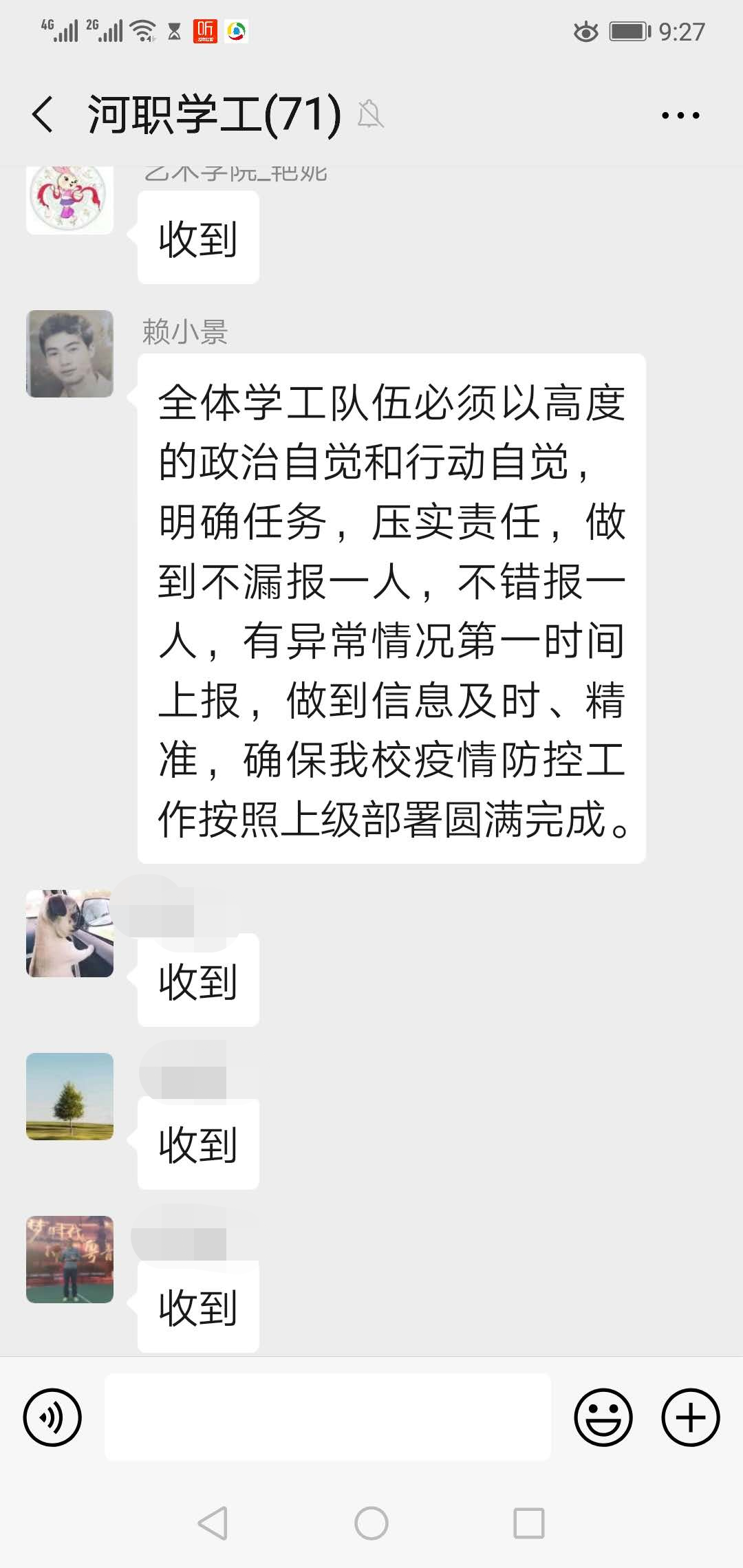 为进一步加强疫情防控,根据学校防控新型冠状病毒感染的肺炎疫情工作领导小组的工作要求,学工处全面统筹学生疫情防控应急处置工作,设下专门防疫人员队伍,具体负责全校留校与返乡学生疫情摸排与信息报等事宜。及时向全体辅导员和学生转发学习教育部、省教育厅、市防疫指挥部相关文件和通知,做到第一时间知悉、第一时间执行、确保工作科学有序推进。向全体师生发出《致辅导员的一封信》、《致全体学生的一封信》;向学生开放“我在校园”数据填报平台,精准、迅速掌握统计学生动态和身体状况。