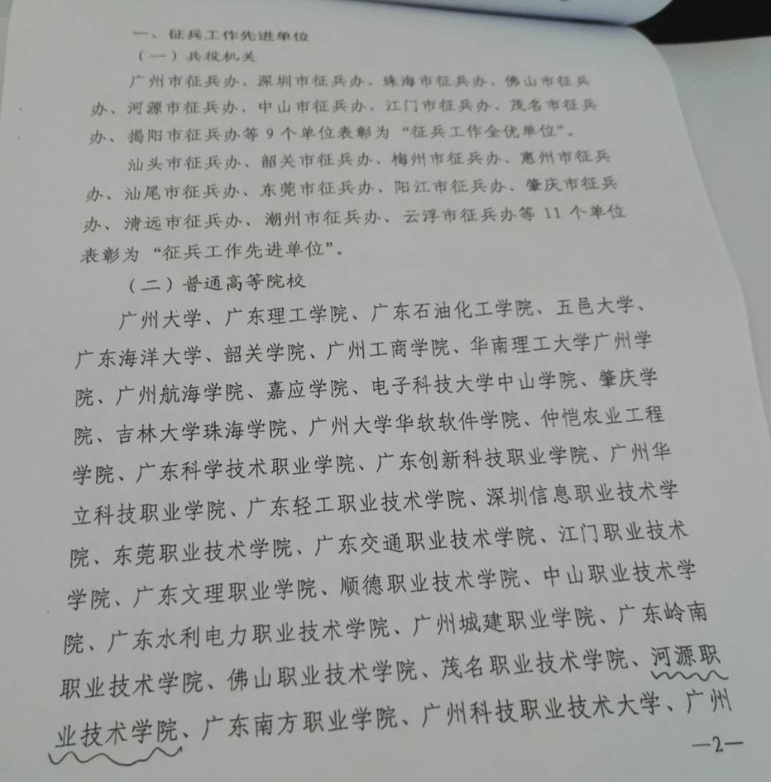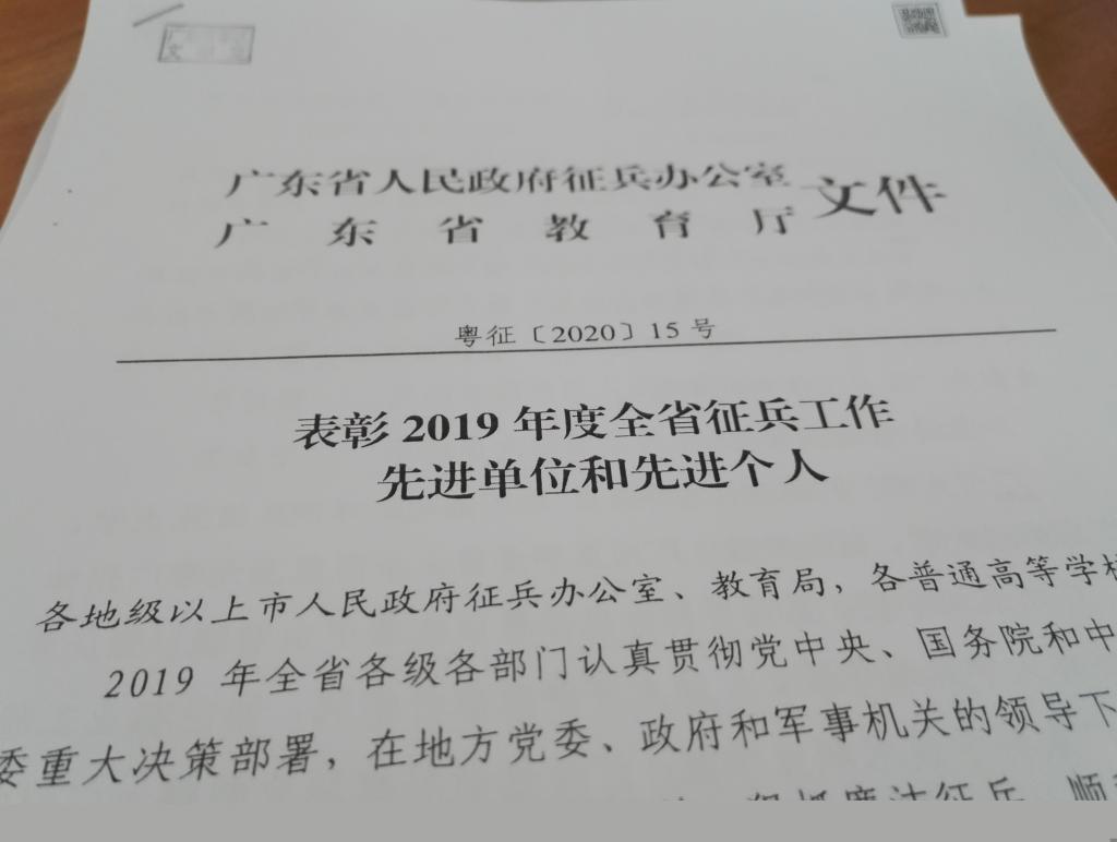 日前,从广东省人民政府征兵办公室、广东省教育厅印发的《表彰2019年度全省征兵工作先进单位和先进个人》(粤征〔2020〕15号)通知,星空在线(中国)唯一官方网站荣获“2019年度广东省大学生征兵工作先进单位”称号。学校已连续两年被广东省人民政府征兵办公室、广东省教育厅评为“广东省大学生征兵工作先进单位”。