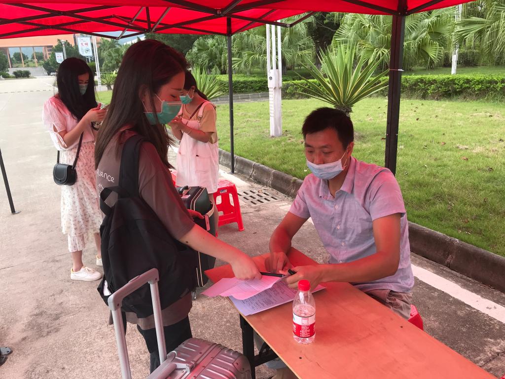 返校当日,毕业生乘坐私家车或专车等交通工具,前后两天分5个批次进校。进校时,大家带好口罩,严格遵守学校入校流程,整个进校环节安全、顺利。进校后,毕业生们严格遵守学校宿舍、饭堂等场所疫情防控管理制度,两天内顺利完成学费缴交、宿舍水电费缴交、毕业设计及档案材料上交、领取毕业证书等工作。