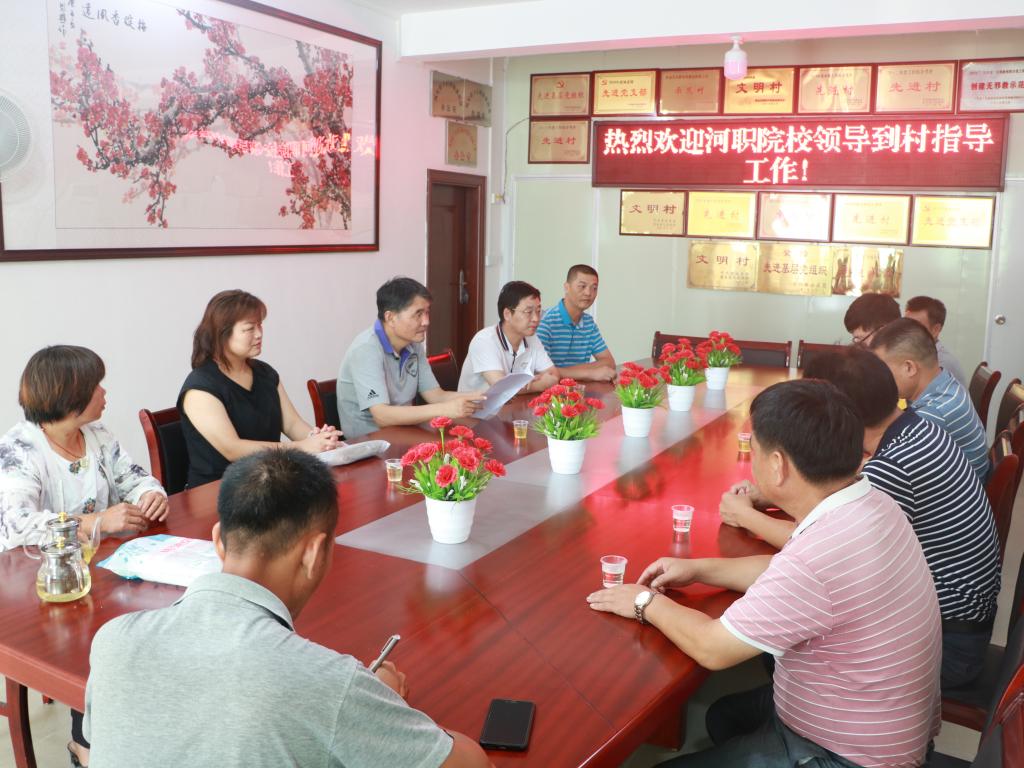 陈德清校长对村“两委”干部以及工作队的工作表示充分肯定,针对当下脱贫工作,他提出三点要求:一是要按照市县扶贫部门的要求,把规定动作做到位并且要高质量地完成;二是结合河职院的资源优势,凸显扶贫成效;三是要强化沟通,发挥党组织的结对共建作用。
