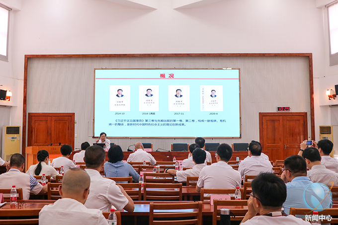 会上,韦荣书记以《习近平谈治国理政》第三卷的“形成背景”“主要内容”“重大意义”三个方面作重点讲解。《习近平谈治国理政》第三卷生动记录了党的十九大以来,以习近平同志为核心的党中央着眼中华民族伟大复兴的战略全局和世界百年未有之大变局,不忘初心、牢记使命,统揽伟大斗争、伟大工程、伟大事业、伟大梦想,团结带领全党全国各族人民推动党和国家各项事业取得新的重大进展的伟大实践。《习近平谈治国理政》第三卷与先期出版的第一卷、第二卷,构成一脉相承,是新时代中国特色社会主义的理论创新成果。对外传播中国好声音,讲好中国故事,让国际社会了解中国领导人治国理政的思想和理念。