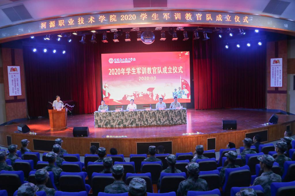 10月14日下午,学校在艺术楼演播厅举行了2020年学生军训教官队入队仪式,学校党委韦荣书记,王小宁副校长,武装部部长邓伟昌,校团委书记陈晓峰,学生工作处负责人戴佰阳等,以及各二级学院副书记,武装部、学生工作处相关人员,2020年学生军训教官队全体人员出席了本次仪式。学生军训教官队入队仪式由学校武装部部长邓伟昌同志主持。