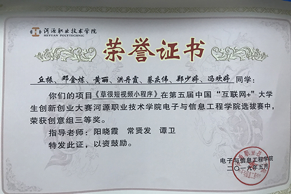 丘振同学在全国计算机技能大赛获得初赛优秀奖