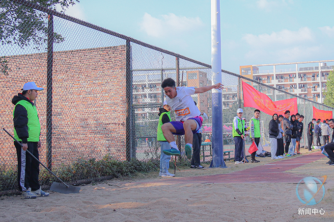 操场上彩旗招展,标语飞扬,下午14点30分,女子乙组跳高预决赛正式拉开了序幕。工商管理学院酒店管理专业的蔡和嘉左腿一蹬,右腿一抬,身子一跃而起,像一只飞燕般掠过横杆。这一套动作又连贯又干净利落,最终以1.19m的高度取得了此次女子乙组跳高第一名。