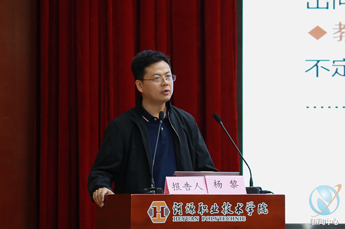 会后,深圳职业技术学院杨黎副教授作经验分享报告,他从共同开展党建活动、共同建设高水平专业、共同开发课程标准、共同打造师资团队、共同设立研发中心、共同开发高端认证证书、共同开展创新创业教育、共同招生、共同“走出去”等九个方面和我校教职工分享了他在深职院的工作经验,深受教职工欢迎,为我校办学提供了有益参考。