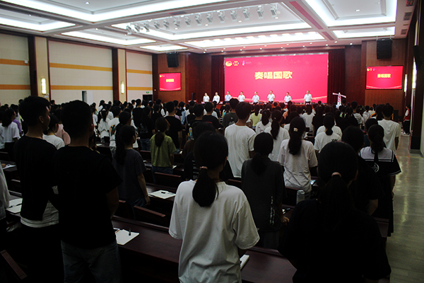 全体起立,奏唱国歌