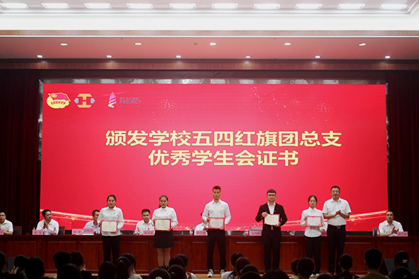 为五四红旗团总支、优秀学生会颁发荣誉证书
