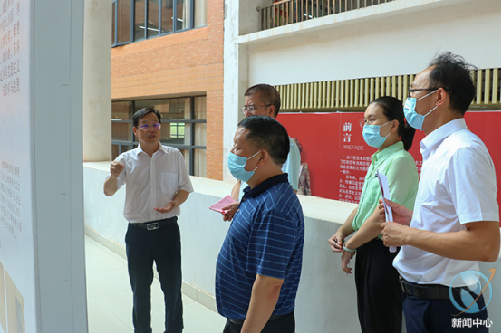 开展仪式上,党委书记韦荣、副校长张国勇及党政办、宣传部、思政部、图书馆相关负责人共同为主题展览揭幕。