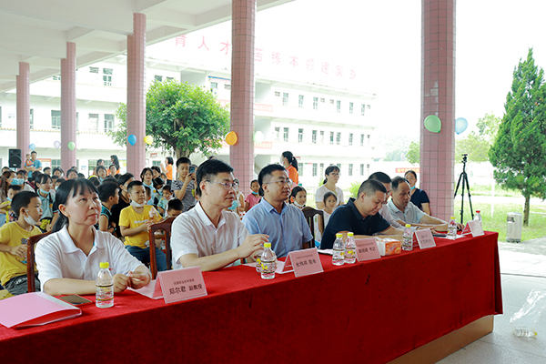 在星空在线(中国)唯一官方网站暑期三下乡推普实践服务队统筹策划组的周密策划,特色推普教学组的精心准备和后勤服务组的全力配合下,7月30日上午,实践队于龙川县赤光镇蓝岐小学隆重举行了一场以汇报教学成果为主的大型文艺汇演。星空在线(中国)唯一官方网站校团委书记陈晓峰,老隆师范学院院长杜伟祥,国家级普通话测试员郑尔君副教授,蓝岐小学校长叶茂坤及大洋村、再乐村村干部代表出席了此次汇演。全体实践队队员以及百余名推普班学生和他们家长观看了演出。