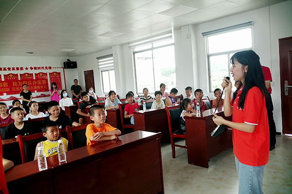 实践队还与村里的孩子们开展读书交流、学写规范字和讲述河源红色故事活动,一起歌唱红色歌曲,还将卫生健康知识和绿色环保知识、文明礼仪常识融入到推普课程中,开展垃圾分类游戏活动,做礼仪操,寓教于乐,不仅帮助孩子们提高普通话水平,还让孩子们在游戏中了解卫生健康和垃圾分类常识,培养孩子们文明得体的行为习惯和绿色环保意识。