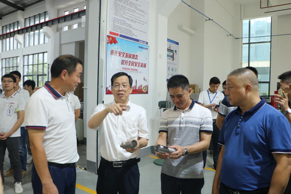 在铭镭激光智能装备(河源)有限公司,韦荣书记一行受到了王余生董事长等企业高管的热情接待。在王余生董事长的引领下,韦荣书记一行参观了企业展厅和生产车间,详细了解企业的技术开发、生产及销售。我校与铭镭激光智能装备(河源)有限公司前期已有深入合作,2019年开始,机电工程学院开始为公司输送优秀毕业生,2020年4月联合申报广东省产教融合型企业建设培育和挂牌大学生校外实习基地,2020年10月进行国家级现代学徒制班人才联合培养和申报广东省教育厅课题,此外,双方还进行专业人才培养计划、课程开发等合作。