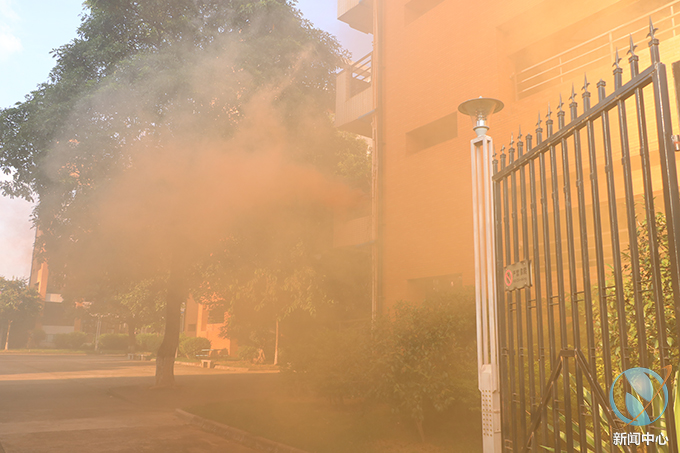 此次演练假想A1304宿舍成员因违规使用高功率用电器、A6210宿舍成员因吸烟引发火灾危及校园师生人身安全。