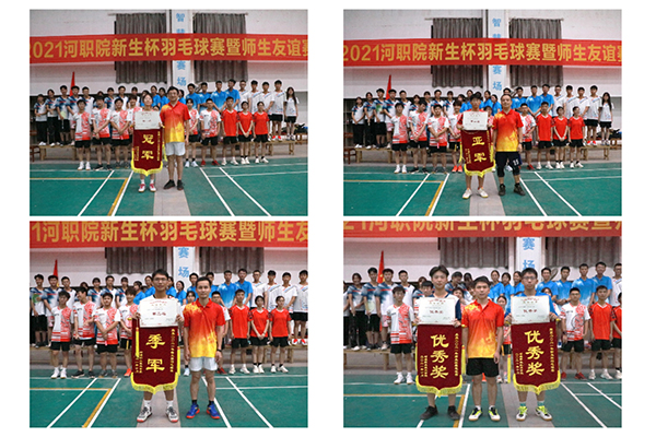 活动伊始,总裁判长宣布了此届新生羽毛球赛比赛结果:老隆、机电、工商学院代表队伍分别获得冠、亚、季军;艺设学院与电信学院代表队获得优秀奖。紧接着,由校团委书记陈晓峰、机电学院院长钟建坤老师、叶永玖和谢志能老师分别为各学院队伍颁奖。