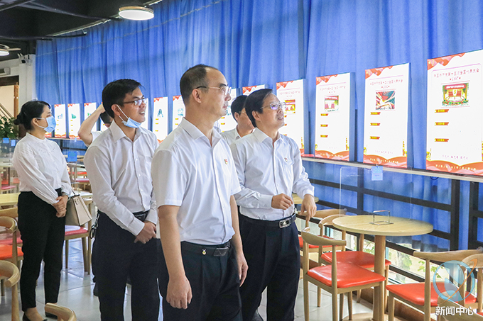 随后,韦荣书记、赖小景副校长、王小宁副校长等领导共同为“党史学习教育实践基地”“党员e修志愿者服务站”揭牌,并参观我校第二食堂党员之家“中国共产党的发展历程展”和“河源新民主主义革命时期的党史宣传展”。