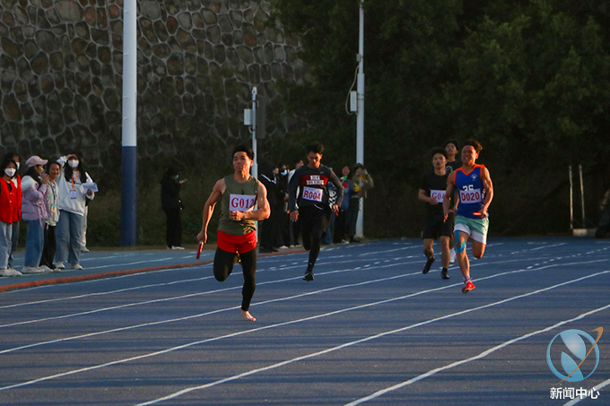 下午16时51分,教职工混合丙组4×100接力赛在裁判的口哨声中拉开帷幕,本次接力赛共七支代表队参赛,随着裁判哨声落下,运动员紧握手中接力棒,冲出起跑线,在冬日的暖阳里留下一道道奋力奔跑的身影。