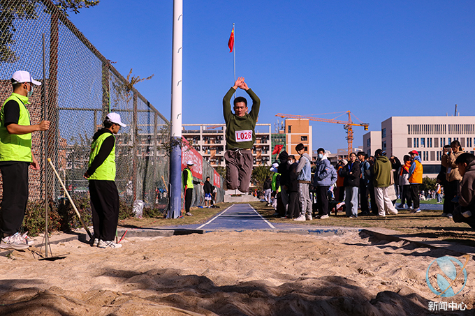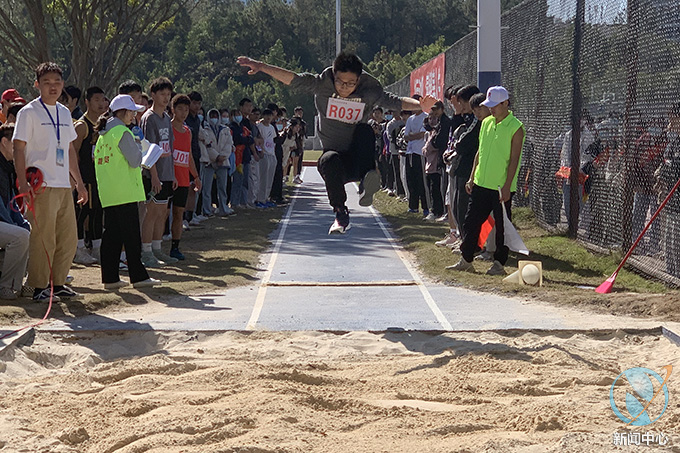 上午10点30分,我校于田径场举行男子乙组跳远预决赛。经过激烈的角逐,来自机电工程学院的潘钊明以6.06米的成绩夺得此次比赛的冠军,同样来自机电工程学院的夏小龙以5.80米的成绩获得此次比赛的亚军,来自老隆师范学院的骆成琪以5.76米的成绩夺得此次比赛的季军。