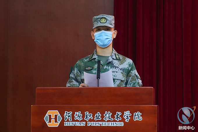 电子与信息工程学院20级学生彭怡彬代表退役大学生士兵发言。在发言中分享了他在部队的感受和体会:在部队中学到流血流汗不留泪,掉皮掉肉不掉队的精神,鼓励想当兵又害怕当兵的同学们要坚定自己的方向去尝试和努力,他号召广大青年学子携笔从戎、报效祖国。