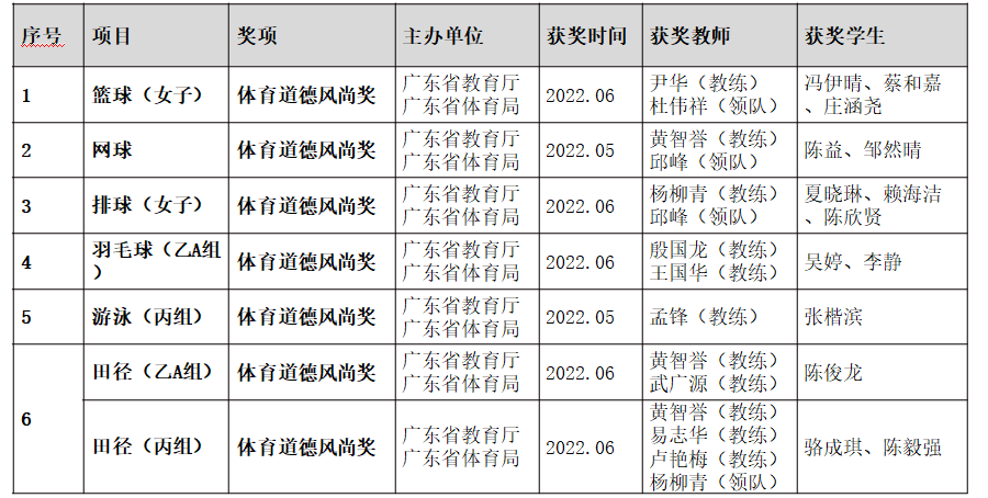 我校获广东省第十一届大学生运动会体育道德风尚奖情况