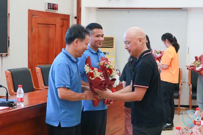 接着由袁光华副校长主持赠花仪式,为凯旋的教练员、运动员献上鲜花祝福。