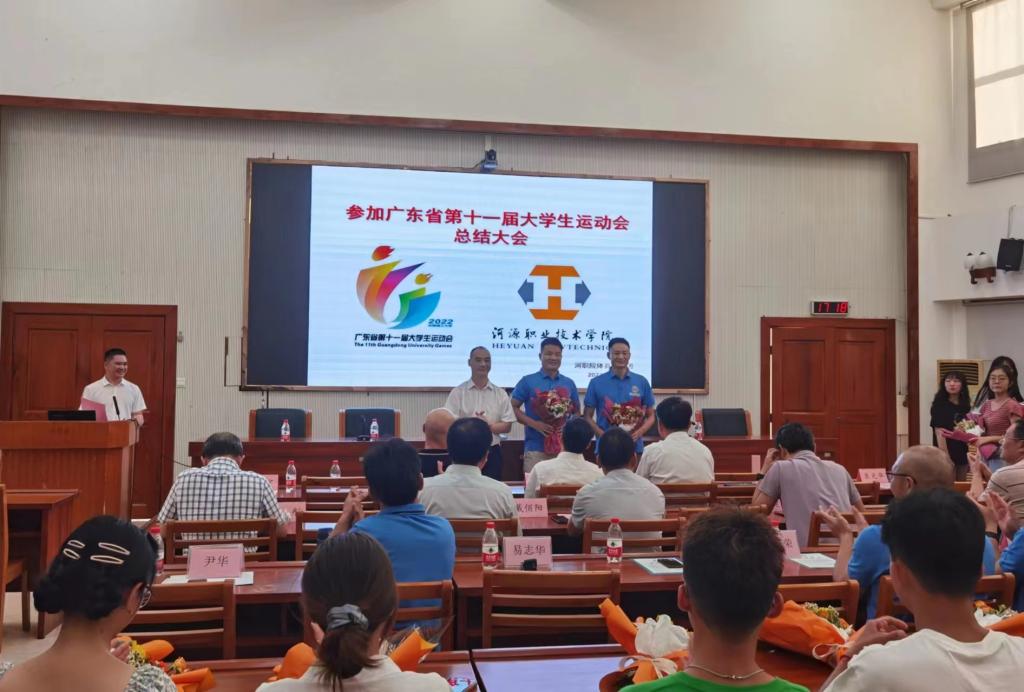 校长陈德清对全体运动员、教练员表示祝贺与感谢。他表示,我校高度重视体育教育工作,积极倡导“无体育、不河职”的体育精神,此次广东省大学生运动会成绩的历史性突破,必将激励我校师生更加积极地参与各项体育运动项目,不断树立和践行“我运动、我阳光、我健康”的体育观念。他为赛场上努力拼搏的教练员和运动员点赞,勉励大家作为学校体育运动的种子力量带动全校兴起体育运动之风。