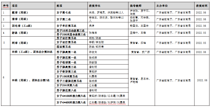 我校参加广东省第十一届大学生运动会获奖情况