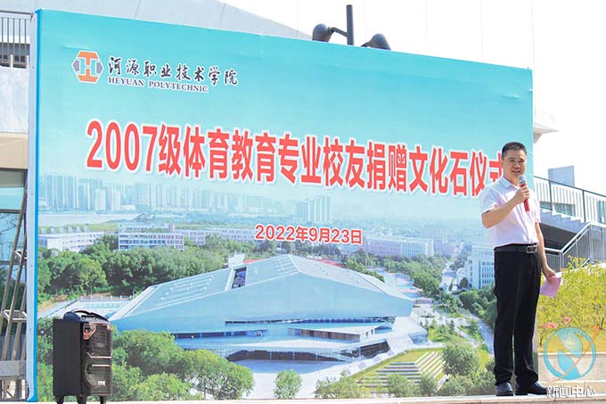 仪式上,2007级体育教育专业校友代表黄欣敏表示,此次文化石的捐赠是2007级体育教育专业学生对母校的一份心意,对母校这十二年来的发展变化表示惊喜与感动,表达了大家对母校未来的憧憬,值此之际,祝愿母校再展宏图,桃李满天下。
