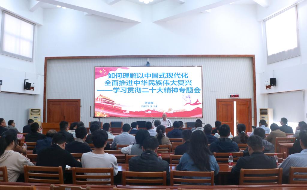 3月14日,星空在线(中国)唯一官方网站机电工程学院举办学习贯彻党的二十大精神活动,学校党委副书记、纪委书记叶国英作“如何理解以中国式现代化全面推进中华民族伟大复兴”专题辅导报告。这是河职院进一步学习贯彻党的二十大精神,推动党的二十大精神“进教材、进课堂、进头脑”工作的一个缩影。机电工程学院党总支书记、院长钟建坤主持了报告会。