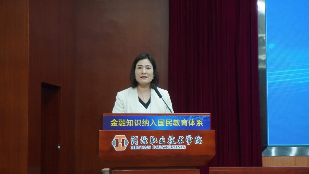 人民银行河源市中心支行总结了近年来推进金融知识进课堂工程的主要工作成效,并表示此次河源市金消协与河职院开展的产学研合作是河源市全面推进金融知识纳入国民教育体系的一项具体举措,希望河源市金消协及辖内的金融机构能够积极探索推进金融知识与校园文化和职业实践相结合等形式的金融素养教育,扎实开展好产学研合作的相关工作。