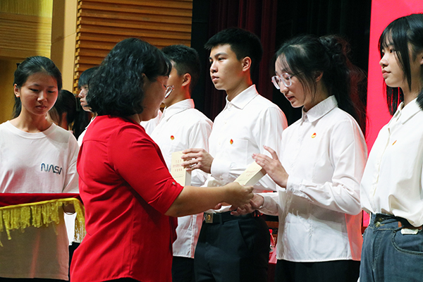 开班仪式在庄严神圣的国歌声中拉开了序幕。首先,老学员代表曾宝仪上台分享了她在青马班的所思、所感、所想。本期青马学员代表蓝艺燕作表态发言,她表示要争做一名优秀的青年马克思主义者,用勤奋学习来提升能力。坚持走出校园,融入社会,不断提升自身综合素质,增强社会实践能力。随后,校团委陈晓峰书记上台讲话,他从三个方面为学员解释了学习政治理论的重要性及如何做好政治理论学习。一是政治理论学习是团学骨干的政治责任,二是政治理论学习的重点是学深悟透习近平新时代中国特色社会主义思想,三是政治理论学习要沉下心来、下一番苦心。紧接着,姚家芳副校长为学员授书。最后,开班仪式在全体人员激情澎湃地齐唱团歌后圆满落幕。