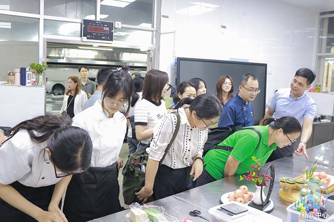 陆英华副局长一行人在钟建坤院长等相关人员的陪同下,先后参观了学校烹饪实训基地、校史馆及机电工程学院相关实训基地。