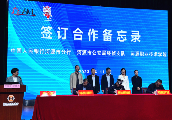 为扩大反洗钱宣传的穿透力和辐射面,提高反洗钱宣传的针对性和实效性,按照“反洗钱知识进高校”三年宣教活动(2022-2024年)的规划,11月16日下午,中国人民银行河源市分行、河源市公安局经侦支队联合我校举办河源市“反洗钱知识进高校”暨反洗钱实践教育基地揭牌仪式。中国人民银行河源市分行陈舒文副行长、河源市公安局程献忠支队长、袁光华副校长出席活动。中国人民银行河源市分行、河源市公安局经侦支队、中国银行代表,我校宣传部、工商管理学院相关人员,以及相关专业学生参加活动。
