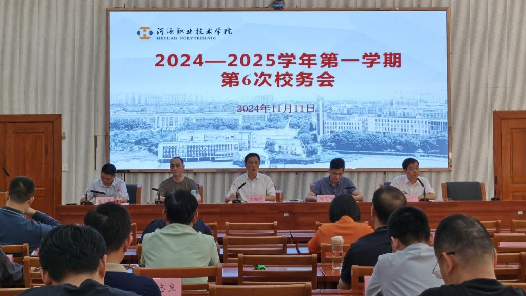 11月11日,学校召开本学期第六次校务会。校领导及各处室、院部负责人,各二级学院党总支副书记以及有关重点岗位负责人参加会议。会议由党委副书记、校长刘贻新主持。