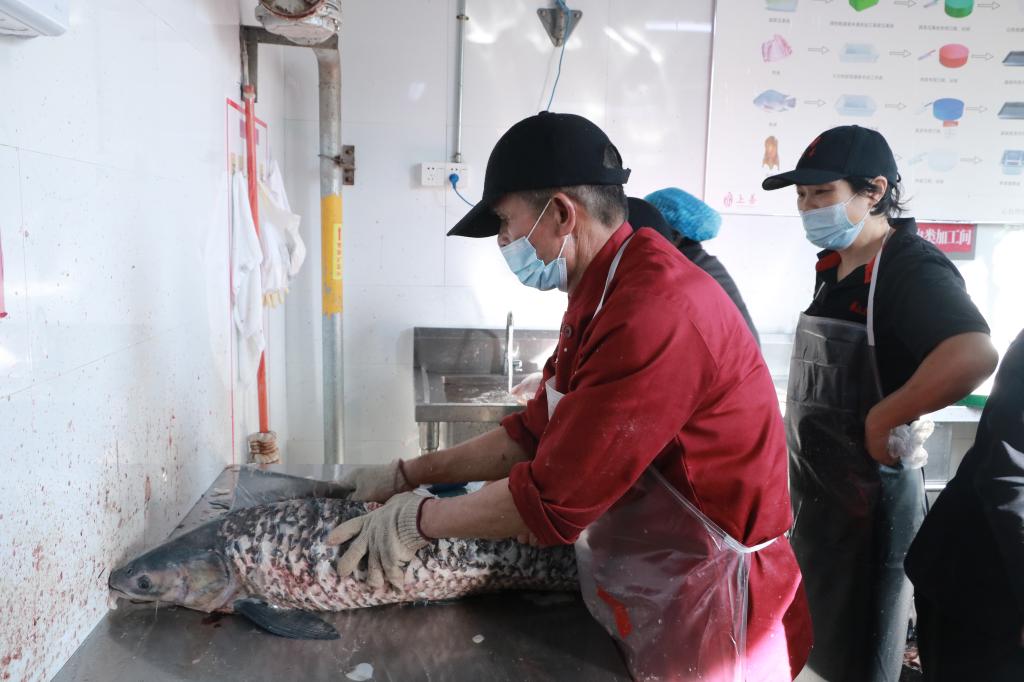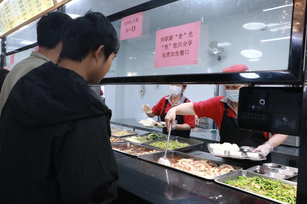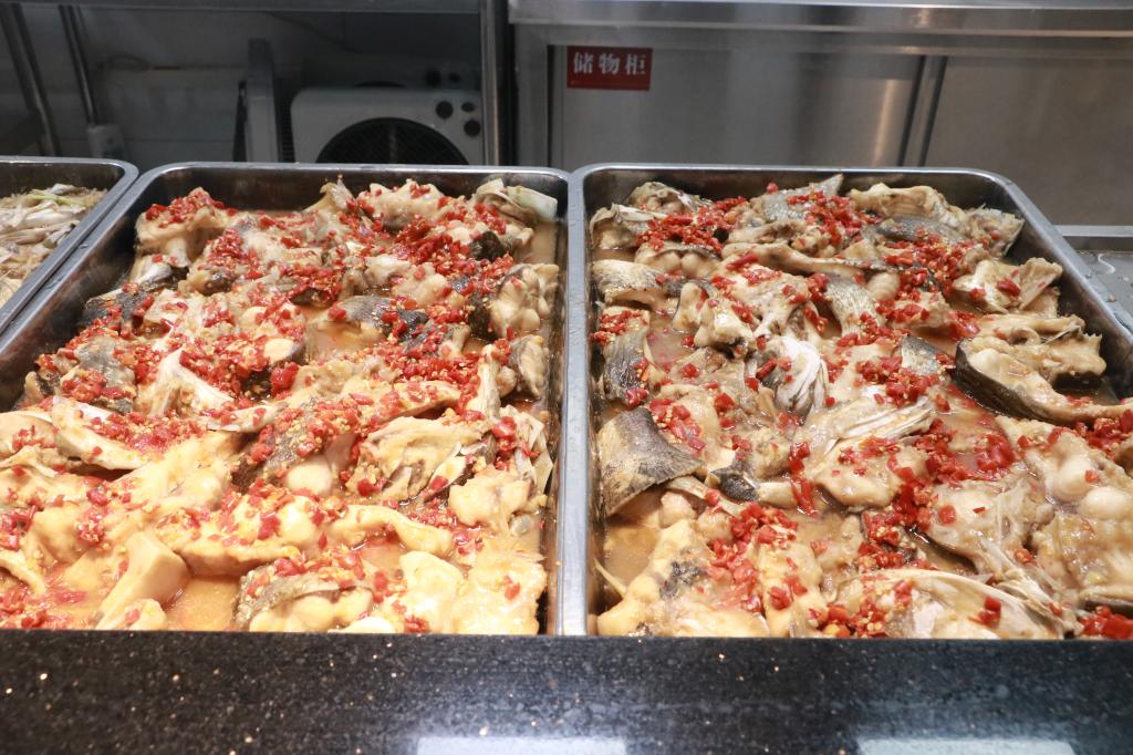 本次活动共捕获约1500斤鱼,捕鱼过程中吸引了许多教职工和同学围观并拍摄记录。鱼材由我校第一、二、三楼食堂平分加工烹饪,分别有鲢鱼、熊鱼、皖鱼,最大的头鱼有30余斤,由8人(专业捕鱼人员)参与捕鱼,后厨人员全员参与鱼肴加工制作,以红烧、清蒸、椒盐、鱼汤等制作烹饪。一楼食堂经理黄少敏介绍,此次捕获的鲜鱼被平均分配至三个食堂,后厨团队以剁椒鱼、香辣炸鱼、清蒸鱼等多样菜品,免费供应给师生,让每一位河职人都能感受到这份来自荟萃湖的馈赠。二楼食堂经理苏映平表示,他们准备了剁椒蒸鱼头、香酥鱼、红烧鱼、豆腐鱼头汤等多样美味,等待师生的品尝。三楼食堂厨师长邱林健则表示,他们的团队主要负责鱼头汤、清蒸鱼、红烧鱼、甜酸鱼四个菜系,每一道菜都是对食材的极致尊重。