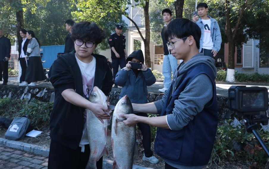 为进一步丰富校园文化生活,增强校园凝聚力,促进师生间的互动与交流,营造积极向上、温馨和谐的校园文化氛围,同时合理利用学校资源,共享学校发展成果,我校于12月3日成功举办了以“河职新‘食’光,‘鱼’您共分享”为主题的荟萃湖捕鱼及鱼肴分享盛宴活动。本次活动通过捕捞荟萃湖中的鱼并烹饪成多种美味鱼肴,免费供全体师生享用,旨在让大家在品尝美食的同时,感受校园生活的乐趣和河职院大家庭的温馨。