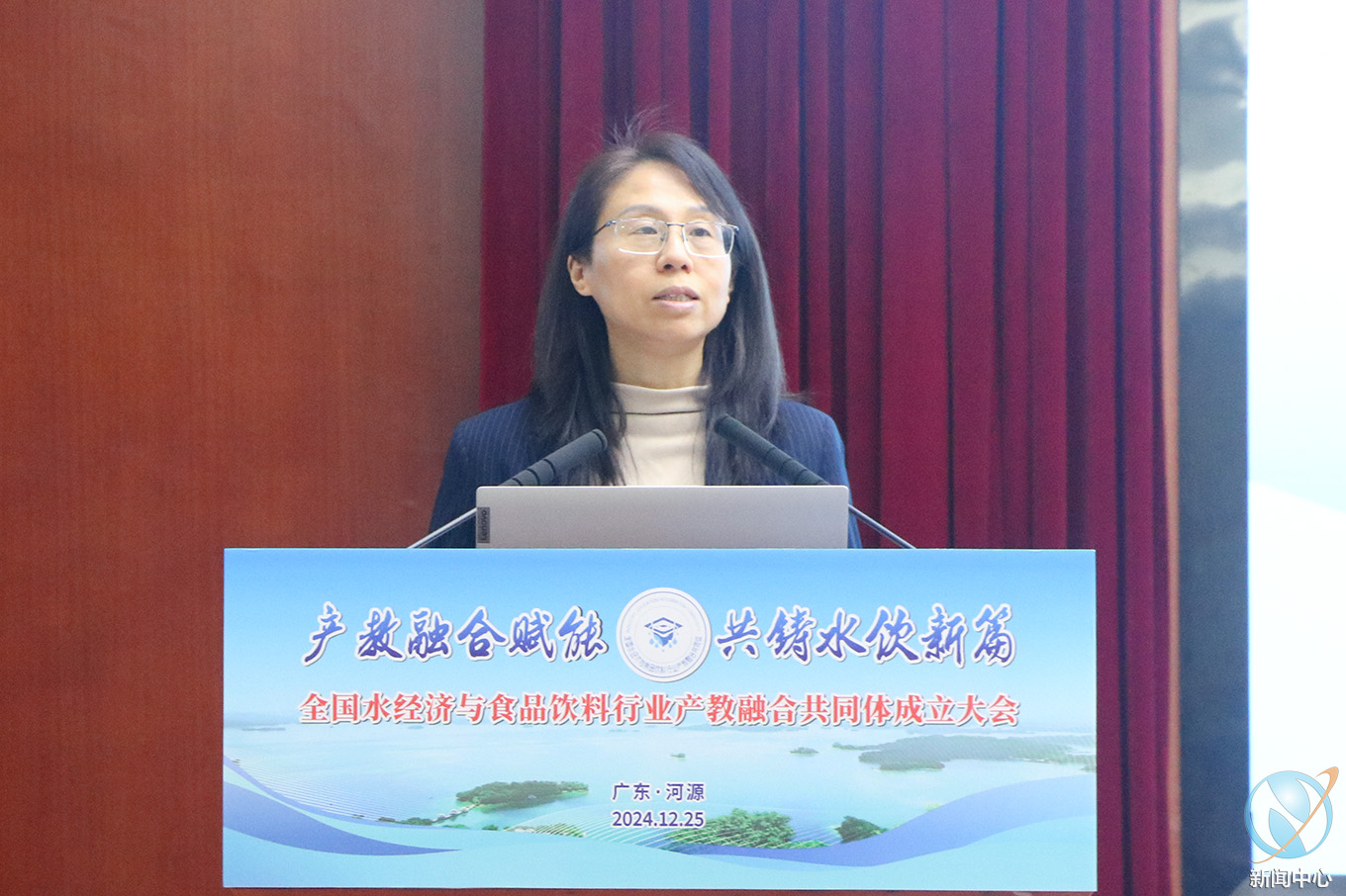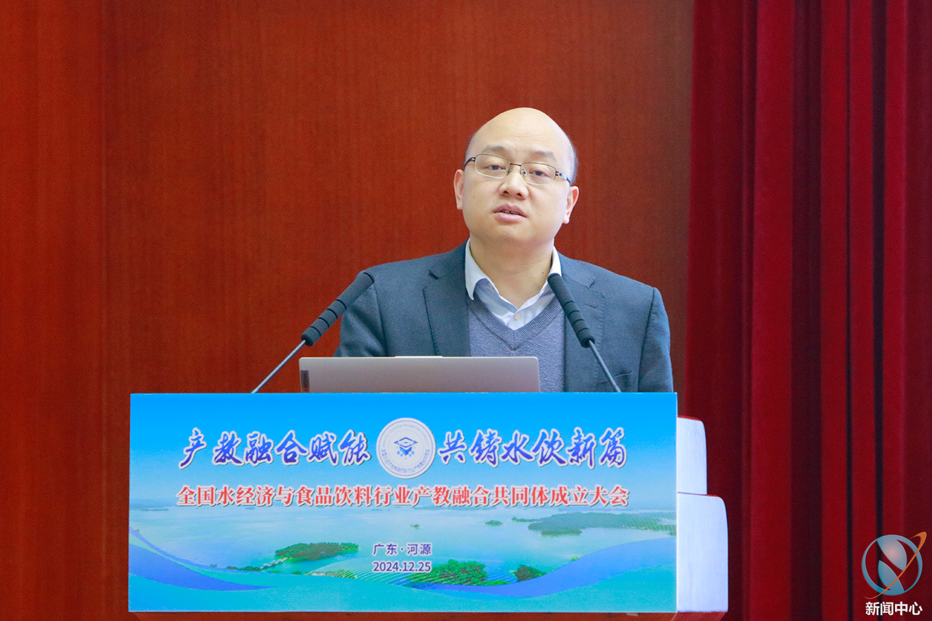 为进一步深化产教融合,促进教育链、人才链与产业链、创新链有机衔接,推动教育优先发展、人才引领发展、产业创新发展,12月25日,全国水经济与食品饮料行业产教融合共同体(以下简称“共同体”)成立大会在我校举行。河源市副市长谢春艳,相关市直部门领导,北京大学冯科教授、栾胜基教授、田伟教授,共同体成员单位代表,我校党委书记韦荣,党委副书记、校长刘贻新等出席会议。