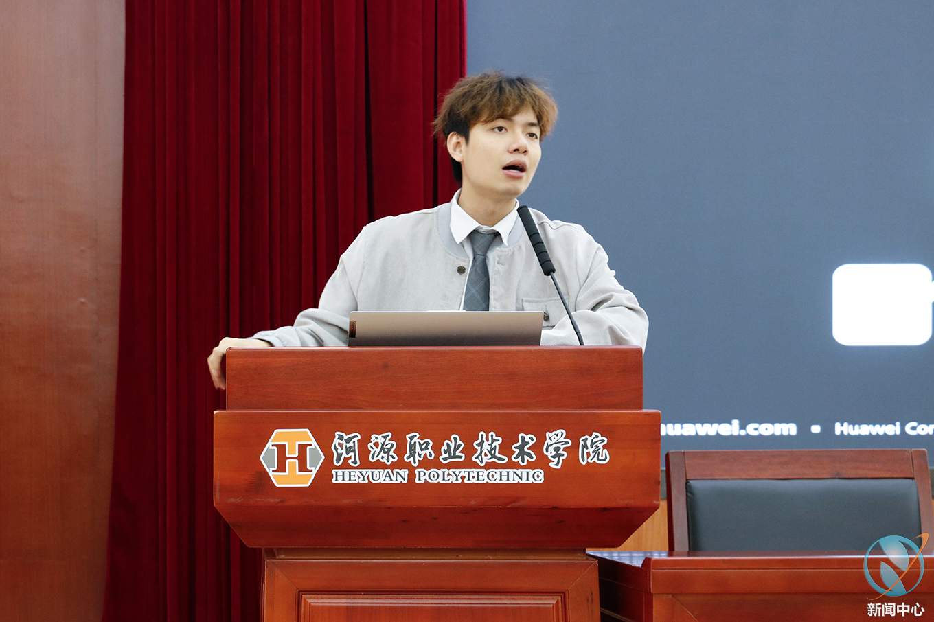 2024年度华为数通精英班优秀学生代表张烁航同学分享了学习心得。他提到,在华为数通特色班的学习中,通过“理论-模拟-实战”三位一体的教学模式,他从网络技术“小白”成长为能独立设计网络的“技术达人”。他感谢学院和老师的支持,并表示未来将向HCIE认证迈进,用技术赋能网络自动化。
