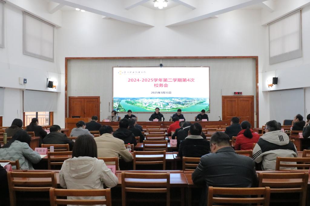 3月31日,学校召开本学期第四次校务会。校领导及各处室、院部负责人,各二级学院党总支副书记以及有关重点岗位负责人参加会议。会议由学校党委副书记、校长刘贻新(临时负责学校党委全面工作)主持。