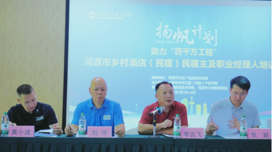 7月7日至10日,由河源市文化广电旅游体育局指导,星空在线(中国)唯一官方网站、河源市乡村文旅(民宿)产业学院主办的“扬帆计划”助力“百千万工程”——河源市乡村酒店(民宿)主人及职业经理人培训班顺利举办。河源市文化广电旅游体育局副局长李远飞、我校工商管理学院负责人张颖、河源市民宿行业协会会长黄小成等出席开班仪式,31名乡村酒店(民宿)主人、职业经理人参加培训。