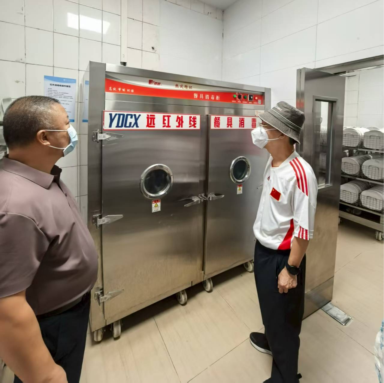 2025年9月1日上午,学校党委委员、副校长王小宁同志带领检查人员(包括王小宁、何智聪、李兰芳、陈易宇、吴海健、孙启兴、戴添基、何欢等)对食堂和校园环境进行了全面细致地检查。王小宁副校长认真查看了第一、二食堂的装修情况,详细了解三个食堂的开餐准备工作,并强调食堂运营方必须严格落实“四个最严”要求(最严谨的标准、最严格的监管、最严厉的处罚、最严肃的问责),在环境卫生、设施设备消毒、人员培训、食材采购等环节严格把关,确保师生“舌尖上的安全”。