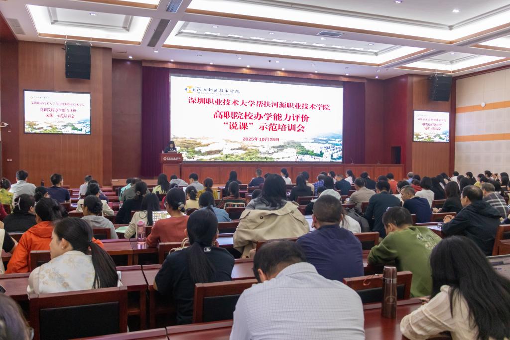为深化校际合作,推动职业教育高质量发展,2025年10月28日,深圳职业技术大学(以下简称“深职大”)专家团队一行七人来我校开展对口帮扶活动。本次活动由深职大教务处牵头组织,涵盖名师工作室指导、教学团队建设、新教师培训、教学大赛指导、教研室活动及“说课”示范等多个环节,内容丰富、安排紧凑,取得了良好成效。